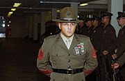 HE IS THE QUANTICO DRILL INSTRUCTOR WHO HAS NEVER SEEN COMBAT BUT HAS SAVED COUNTLESS LIVES BY TEACING SLOUCHING RED NECKS AND SCHOOL DROPOUTS TO BE MARINES AND TO WATCH EACH OTHER'S BACK